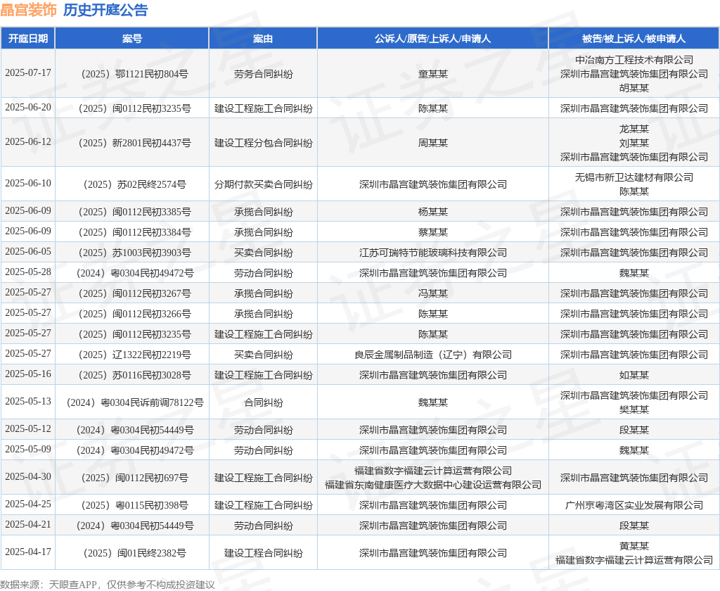 首页-蓝狮在线注册-首页主管QQ83670629--恒盛娱乐证券之星消息,根据天眼查APP显示,近日公布了一则深圳市晶宫建筑装饰集团有限公司作为被告/被上诉人的开庭公告,详细内容如下: